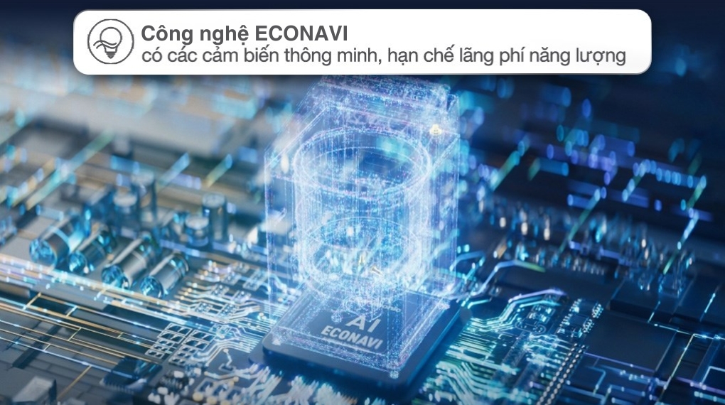 – Máy tích hợp cảm biến Econavi tự động điều chỉnh lượng nước, thời gian giặt để tối ưu hiệu suất giặt sạch và giảm tiêu thụ năng lượng không cần thiết.