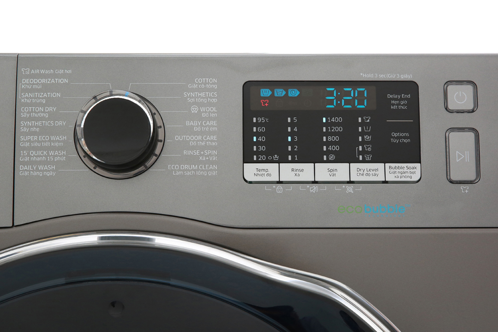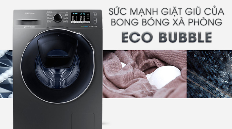 Chế độ giặt bong bóng Eco Bubble giúp tạo ra nhiều hơn lượng bọt xà phòng. Bọt xà phòng thấm nhanh và sâu vào từng sợi vải, làm sạch các vết bẩn trên quần áo của bạn ngay cả với các vết bẩn thông dụng như rượu, tương cà, sô cô la, bùn đất và các loại vết bẩn khó giặt khác. Đây là giải pháp giúp quần áo gia đình bạn sạch hơn mà không cần phải dùng các phương pháp giặt cũ khác như nước nóng, giặt ngâm,…