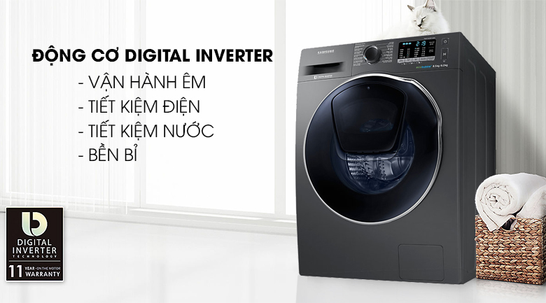 Là một chiếc máy giặt sấy sở hữu công nghệ Digital Inverter, máy giặt Samsung AddWash Inverter 8 kg WD85K5410OX/SV không chỉ góp phần tiết kiệm điện năng cho gia đình bạn mà nó còn mang đến khả năng vận hành vô cùng bền bỉ và êm ái. Chắc chắn bạn sẽ hoàn toàn hài lòng tuyệt đối với công nghệ này.