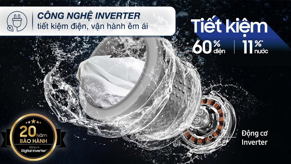– Kiểu động cơ: Truyền động gián tiếp kết hợp cùng công nghệ tiết kiệm Digital Inverter trang bị nam châm vĩnh cửu, giảm thiểu ma sát giúp vận hành êm ái hơn so với động cơ thông thường giúp tiết kiệm điện năng, tăng hiệu quả vận hành.
