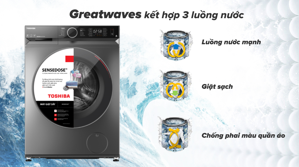 – Công nghệ Greatwaves: với 3 luồng nước tạo lực mạnh mẽ, giặt sạch quần áo nhanh chóng, giảm độ phai màu lên đến 39%, tiết kiệm tới 67% năng lượng khi không cần làm nóng nước mà vẫn đảm bảo khả năng giặt sạch tối ưu.