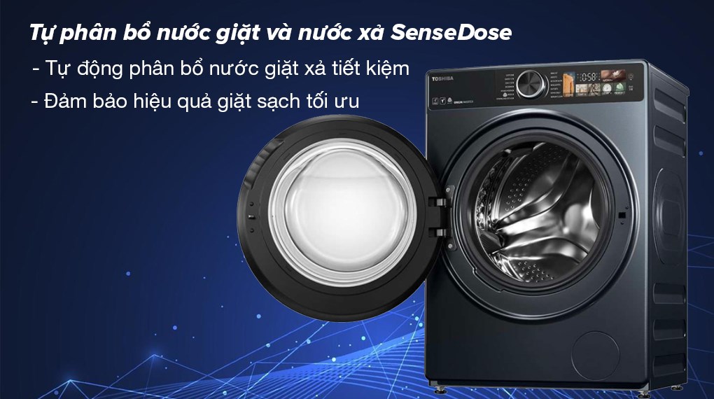 – Tự phân bổ nước giặt và nước xả SenseDose: Thiết kế với 2 ngăn nước giặt và nước xả riêng biệt. Lúc này, máy giặt sẽ dựa vào khối lượng quần áo hiện có trong lồng giặt, để điều chỉnh và sử dụng lượng nước giặt và nước xả phù hợp để mang lại hiệu quả giặt sạch tối ưu.