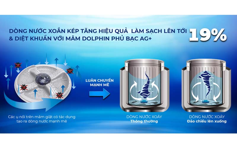 • Hệ thống thác nước thông minh 3 chiều giúp đánh bay vết bẩn hiệu quả
