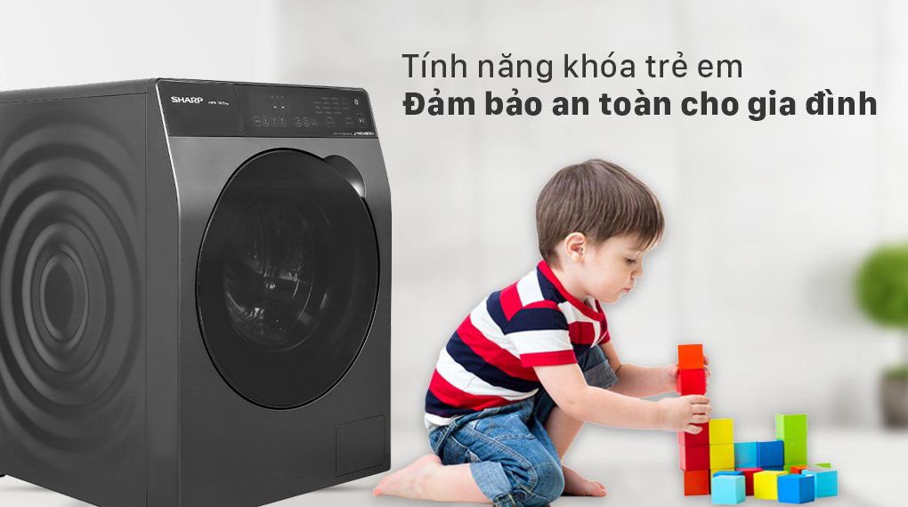 Để phòng tránh tai nạn cho trẻ khi máy giặt đang hoạt động, các thiết bị máy giặt Sharp hiện nay đã được trang bị khóa an toàn trẻ em.