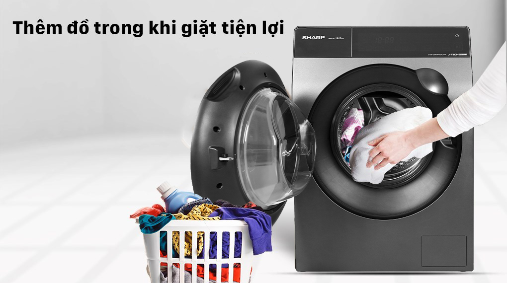 Máy giặt Sharp với tính năng thêm đồ trong khi giặt, giúp bạn dễ dàng thêm đồ giặt bị bỏ sót ngay cả khi máy đã vận hành, vô cùng tiện lợi. Bạn sẽ không phải giặt thêm lần nữa với những quần áo bị sót lại, từ đó tiết kiệm tối đa điện năng và thời gian.