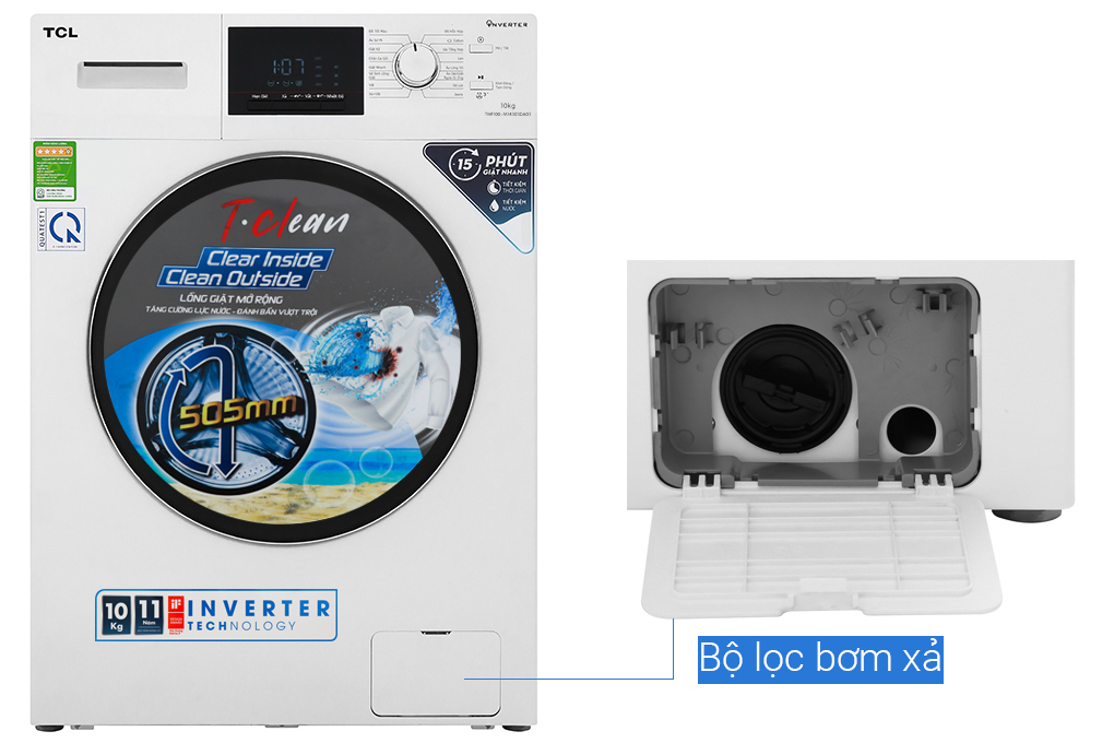 Với chế độ giặt nhanh 15 phút, máy giặt TCL 10 kg này mang lại sự tiện lợi cho người dùng cùng với việc sử dụng nước và năng lượng tiết kiệm hơn.