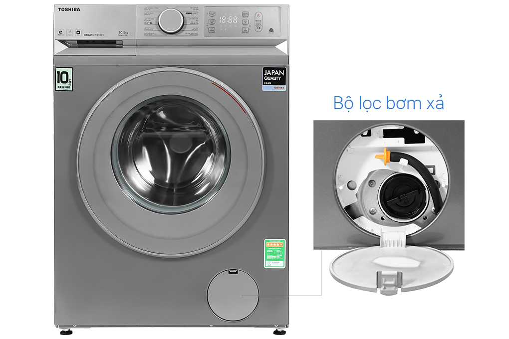 Máy giặt Toshiba 10.5 kg TW-BL115A2V(SS) có kiểu dáng hiện đại, tích hợp công nghệ giặt Greatwaves siêu sóng quét bay mọi vết bẩn cứng đầu, có 12 chương trình giặt cài đặt sẵn, tăng hiệu suất sử dụng và giặt tẩy với công nghệ UFB siêu bọt khí NANO, Steam Wash, Origin Inverter, động cơ nam châm vĩnh cửu, dễ dàng điều khiển qua điện thoại, tiện dụng trong gia đình Việt.