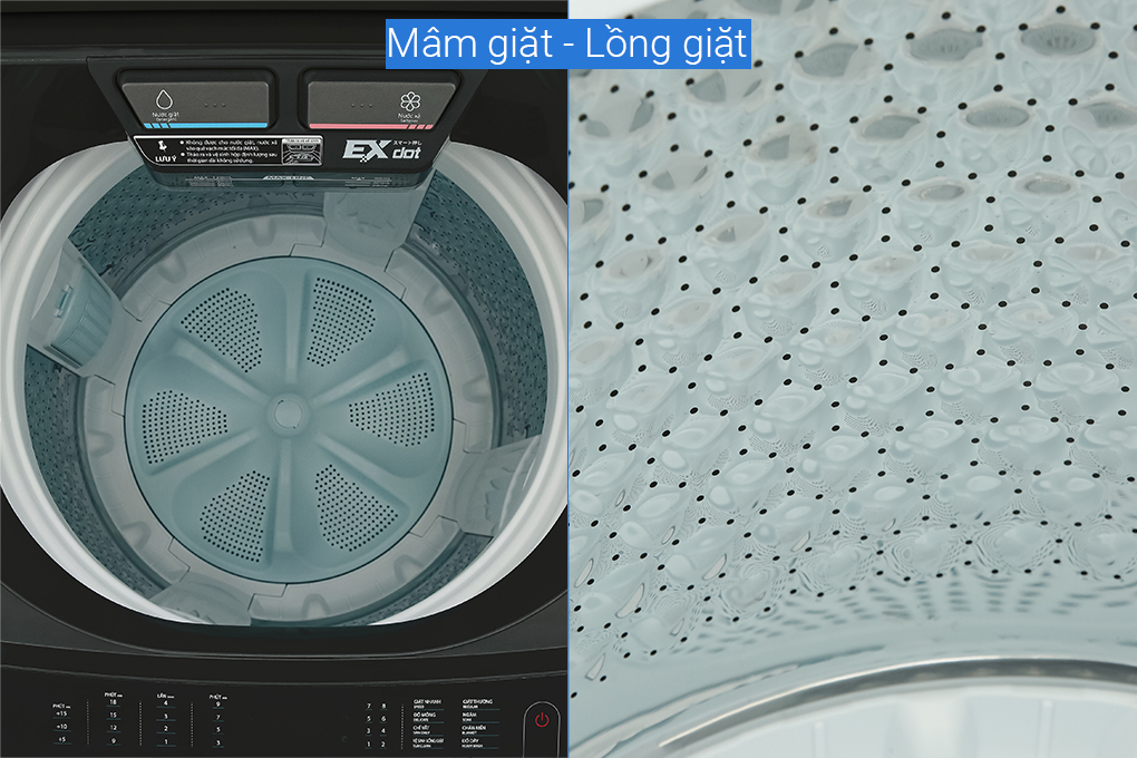 – Lồng giặt làm từ vật liệu thép không gỉ chống oxy hóa, chống ăn mòn, hạn chế nấm mốc, vi khuẩn sinh sôi, phát triển, vệ sinh thuận tiện.
