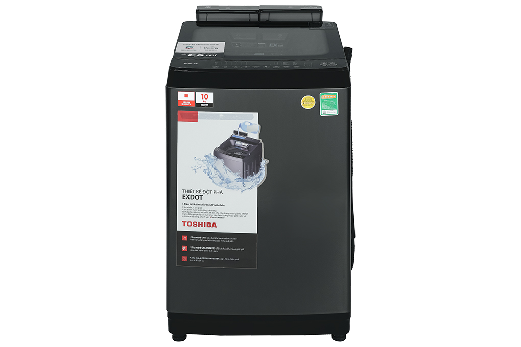Máy giặt Toshiba Inverter 10 kg AW-DUM1100JV(SG) thiết kế hiện đại, giặt đồ linh hoạt với 8 chương trình giặt cài đặt sẵn, tích hợp công nghệ Greatwaves kết hợp 3 luồng nước giúp giặt đồ sạch, hạn chế hư tổn chất vải, công nghệ Fuzzy Logic đảm bảo giặt quần áo sạch trong khi giảm tiêu thụ điện, nước tối ưu, công nghệ Origin Inverter cho máy vận hành êm ái, giặt giũ hiệu quả, đi kèm nhiều tiện ích như nắp máy trợ lực chống kẹt tay, khóa trẻ em, tự động vệ sinh lồng giặt,… khối lượng giặt tối đa 10 kg, lựa chọn dành cho gia đình 5 – 7 thành viên.