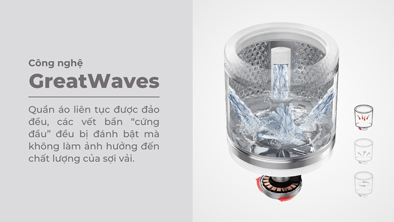 - Công nghệ GreatWaves tăng khả năng giặt sạch, giảm phai màu quần áo.
