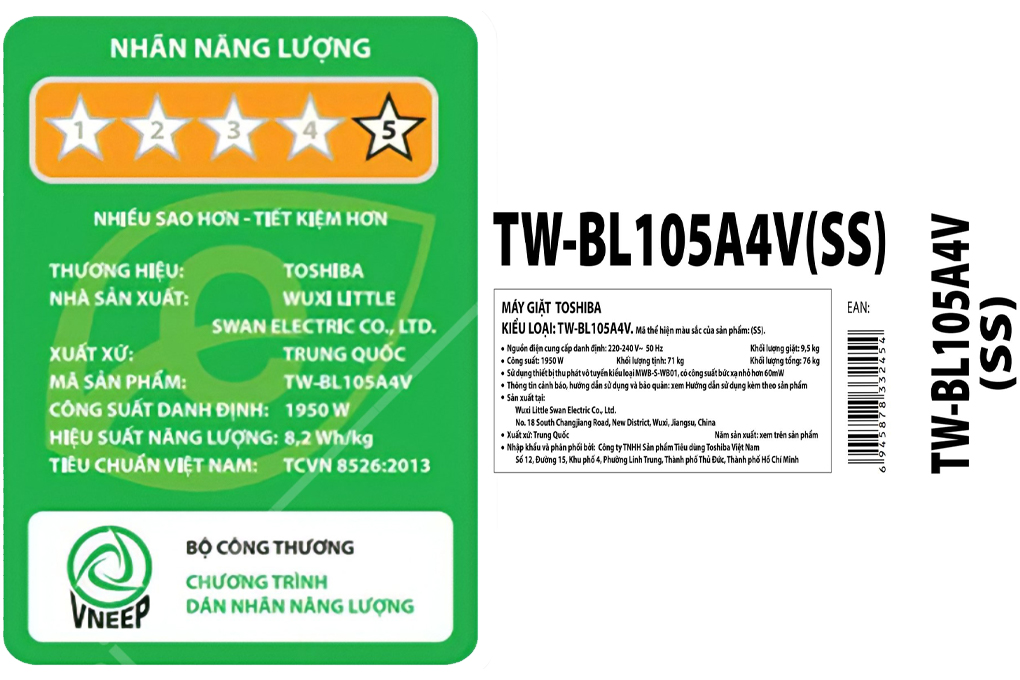 Chiếc máy giặt Toshiba này là lựa chọn phù hợp cho những hộ gia đình có nhiều thành viên (5 – 7 người) hoặc có nhu cầu giặt giũ nhiều quần áo với khối lượng lên đến 9.5 kg trong mỗi lần giặt.