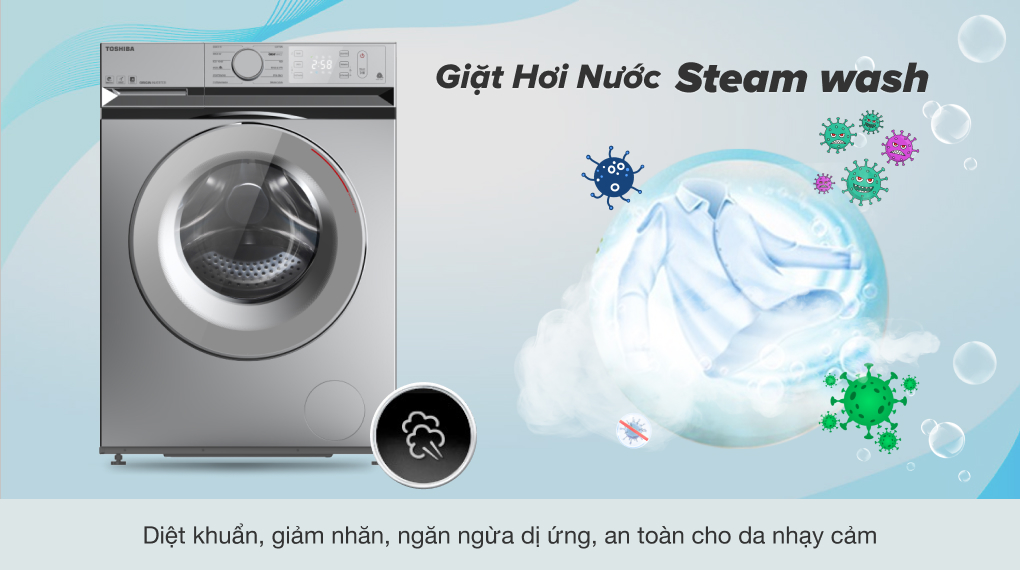 Diệt khuẩn, ngừa dị ứng nhờ công nghệ giặt hơi nước Steam wash