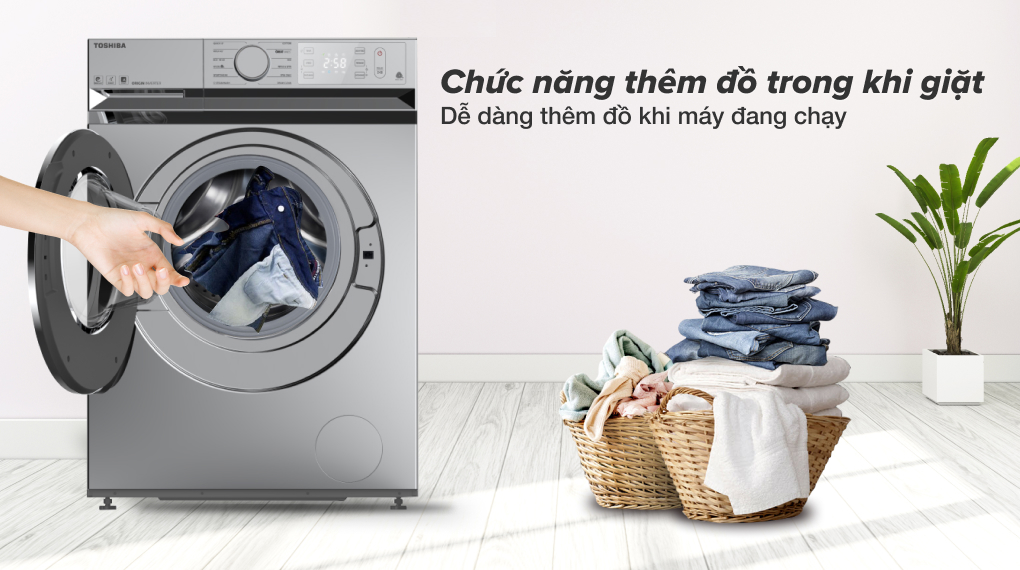 Máy giặt Toshiba 9.5 kg TW-BL105A4V(SS) có tính năng thêm đồ trong quá trình giặt, giúp bạn dễ dàng thêm đồ giặt bị bỏ sót ngay cả khi máy đã vận hành, vô cùng tiện lợi.