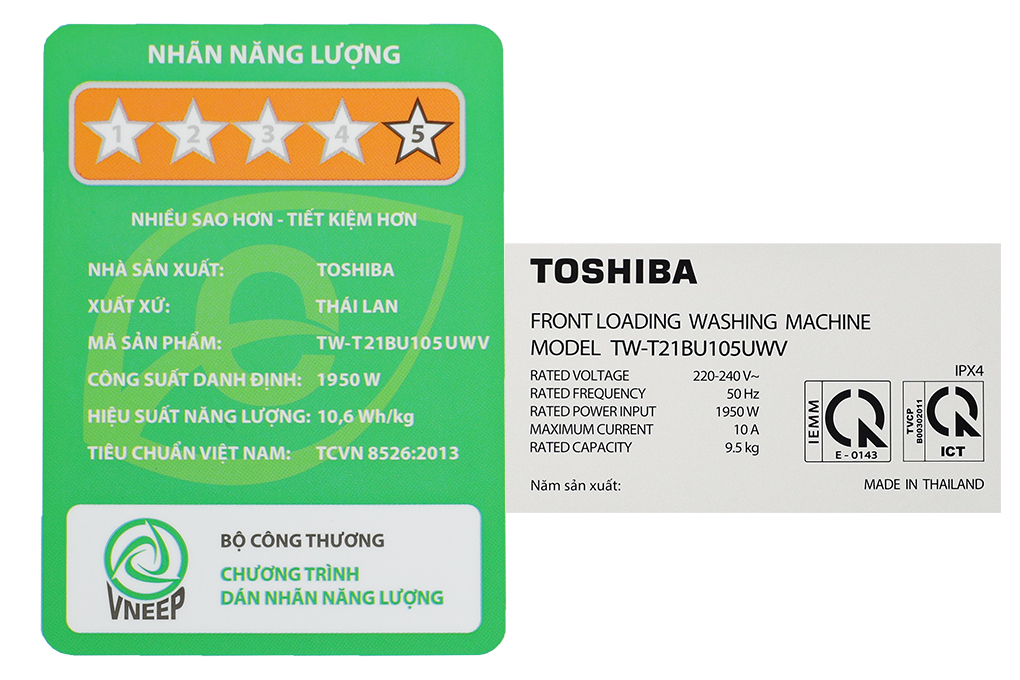 – Nhãn năng lượng: 5 sao với hiệu suất sử dụng điện 10.6 Wh/kg.