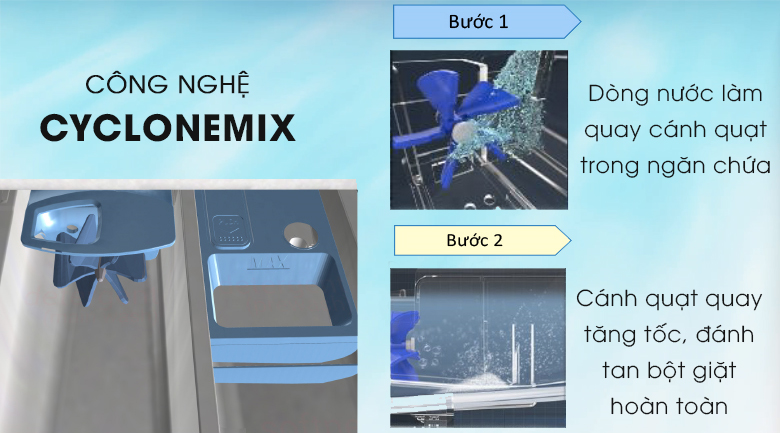 Công nghệ CycloneMix đánh tan bột giặt thành dạng bọt mịn