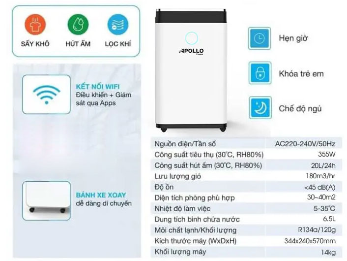 Chức năng của máy hút ẩm Apollo Sumikura NV-210Apollo