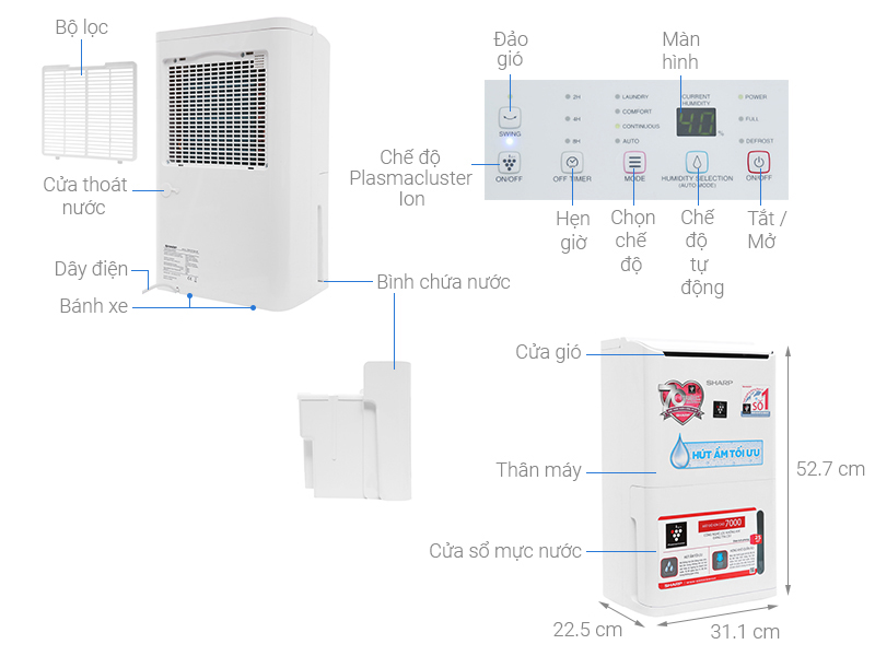 Thiết kế – Máy hút ẩm có lọc không khí Sharp DW-D12A-W