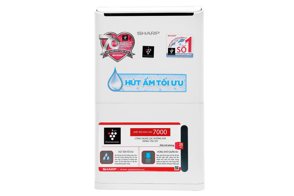 Máy hút ẩm có lọc không khí Sharp có cảm biến độ ẩm kết hợp hút ẩm 12 lít/ngày