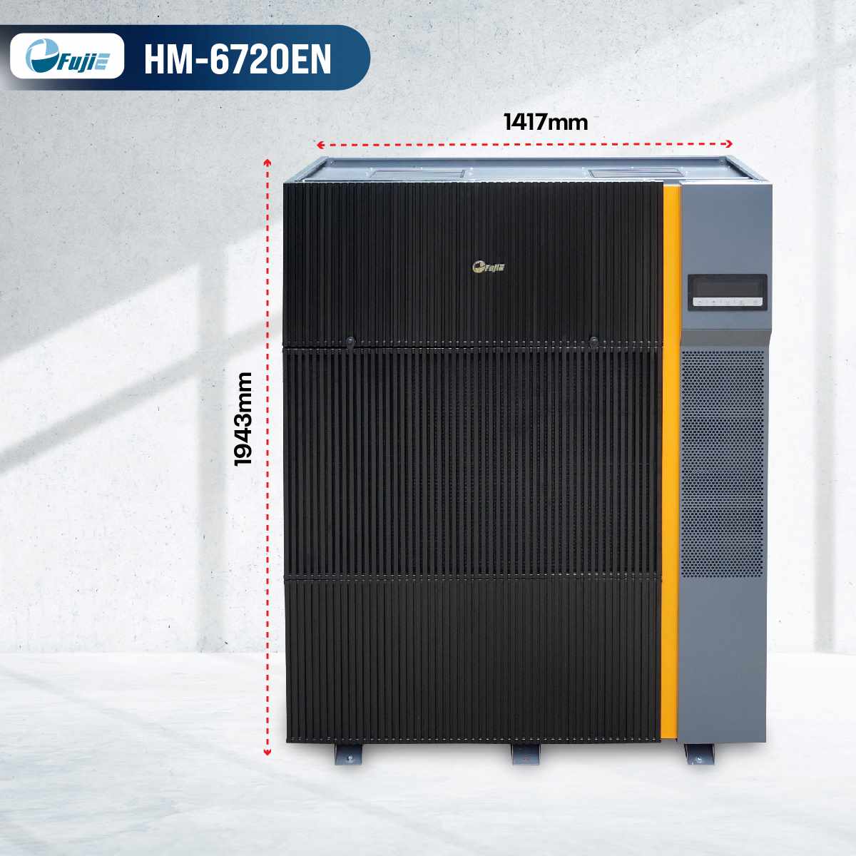 Máy hút ẩm công nghiệp FujiE HM-6720EN là phiên bản nâng cấp hiện đại, thuộc thế hệ mới của dòng sản phẩm FujiE. Sản phẩm được thiết kế tối ưu cho những không gian rộng lớn như kho hàng, nhà xưởng, trung tâm lưu trữ với thể tích từ 800–1000 m³, mang đến hiệu suất hút ẩm vượt trội cùng khả năng vận hành thông minh.