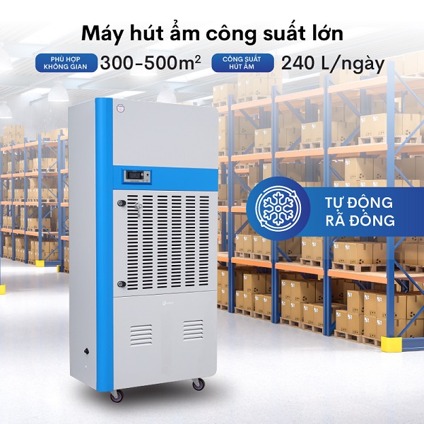 Máy hút ẩm công nghiệp FUJIHAIA DH240BG Đây là dòng máy hút ẩm công nghiệp công suất lớn sử dụng điên 3 pha ( 380v ). Thích hợp sử dụng hút ẩm cho các phòng có diện tích từ 300~500m2 .