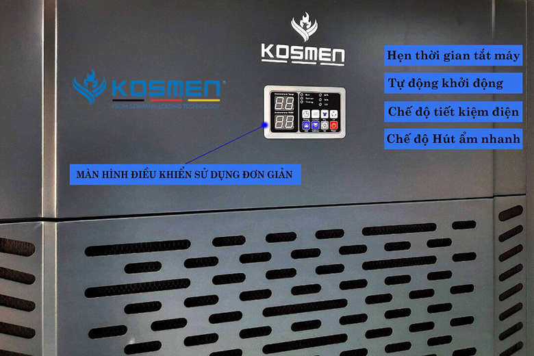 Máy hút ẩm công nghiệp Kosmen trang bị nhiều cơ chế vận hành tự động và tính năng tiện ích, đáp ứng mọi nhu cầu sử dụng. Các chế độ như sấy khô liên tục và tăng/giảm độ ẩm theo yêu cầu giúp người dùng dễ dàng kiểm soát độ ẩm theo ý muốn.