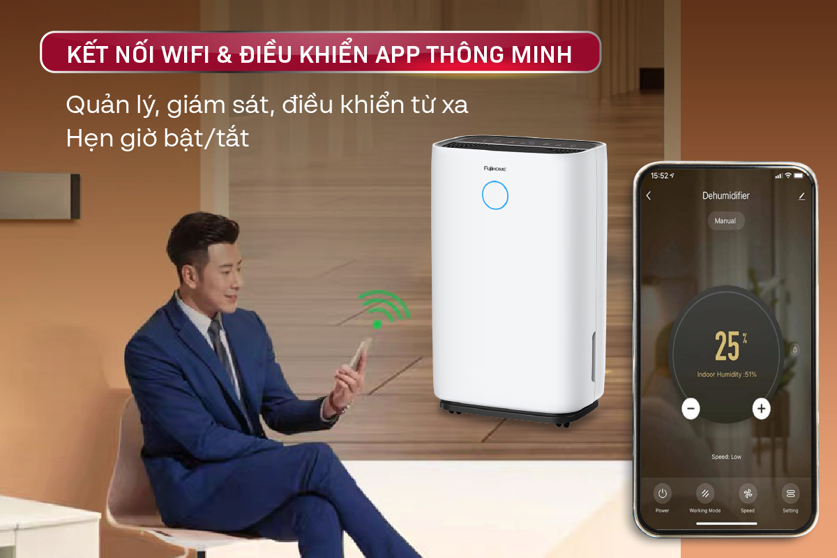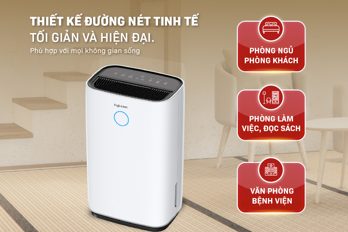Máy hút ẩm dân dụng Fujihome DH25W thế hệ mới không chỉ mang đến khả năng hút ẩm mạnh mẽ mà còn trả lại cho căn phòng bầu không khí trong lành mang đến sự an toàn sức khỏe cho người sử dụng .