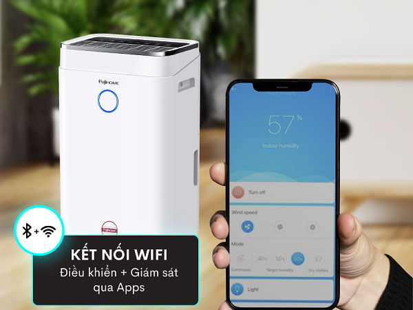 Máy hút ẩm dân dụng Fujihome DH20W Kết Nối Wifi Thông Minh