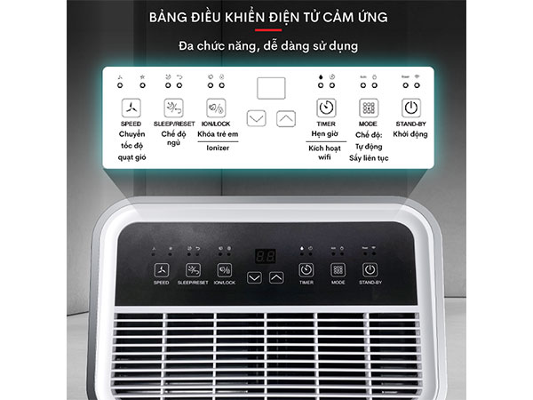 Bảng điều khiển điện tử sử dụng các nút điều khiển cảm ứng thuận tiện khi sử dụng. Màn hình điều khiển trung tâm hiển thị % độ ẩm trong phòng một cách rõ ràng, trực quan.