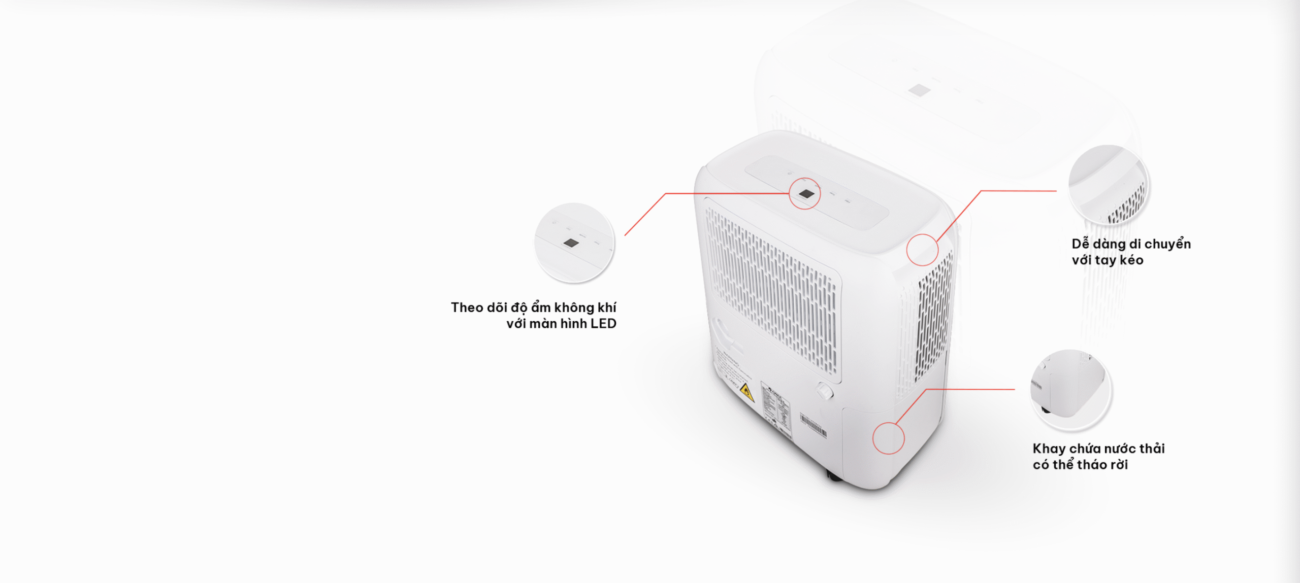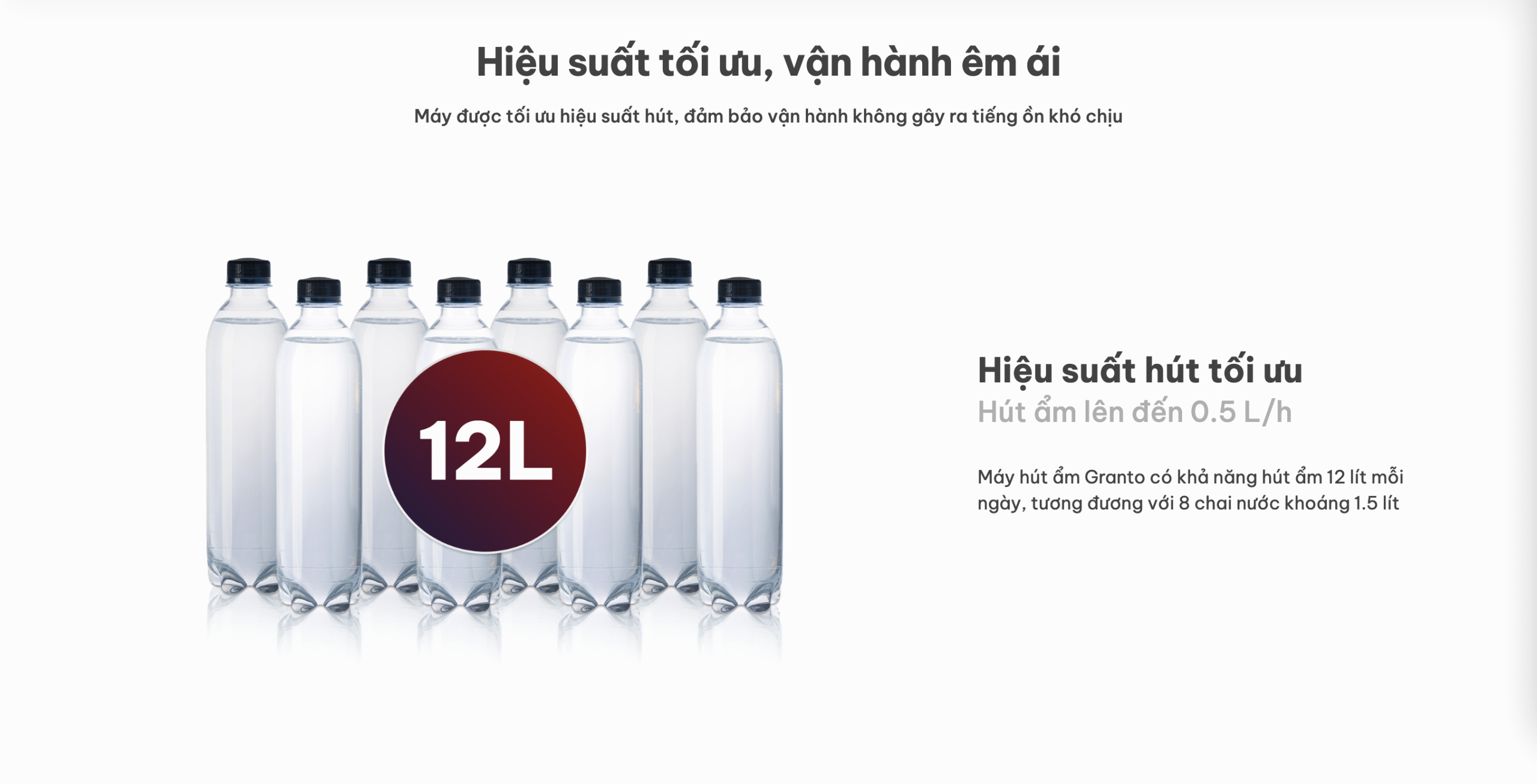 Công suất 12 lít/ngày: Công suất hút ẩm mạnh mẽ, đảm bảo giữ cho không gian luôn khô thoáng, bảo vệ sức khỏe và đồ đạc của gia đình bạn.