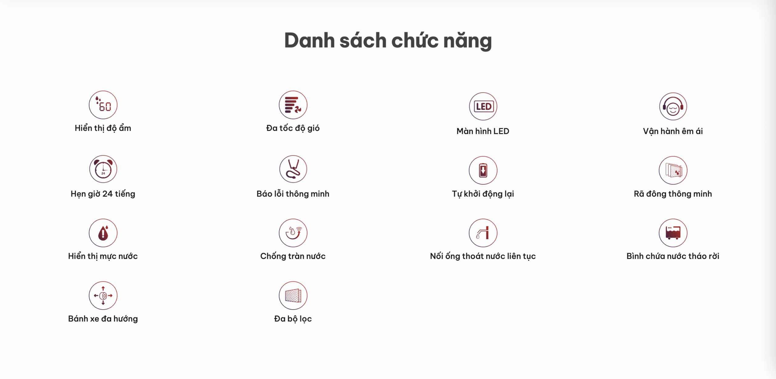 Độ ồn thấp 35dB: Hoạt động êm ái với độ ồn cực thấp, mang lại không gian yên tĩnh, thích hợp cho phòng ngủ hoặc không gian làm việc cần sự tập trung.