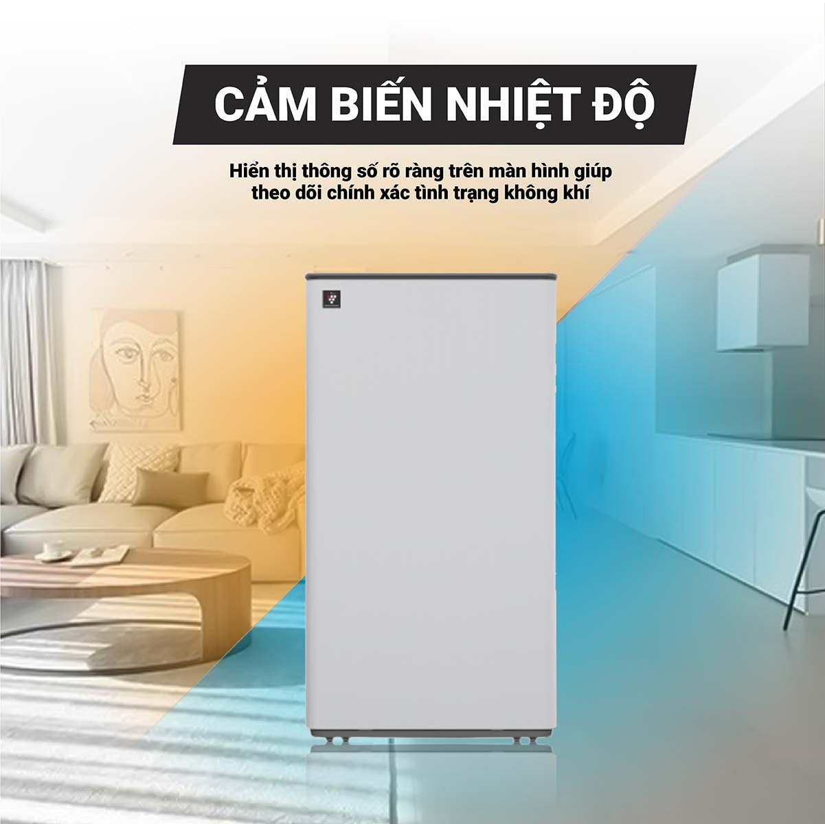 Máy hút ẩm Sharp được trang bị cảm biến nhiệt độ/độ ẩm thông minh, hiển thị thông số rõ ràng trên màn hình giúp theo dõi chính xác tình trạng không khí trong phòng và tự động điều chỉnh hoạt động để duy trì mức ẩm lý tưởng. Nhờ đó, không gian luôn khô ráo, thoáng mát, hạn chế nấm mốc và vi khuẩn phát triển. Đặc biệt, cảm biến này còn giúp máy vận hành hiệu quả, tiết kiệm điện năng.