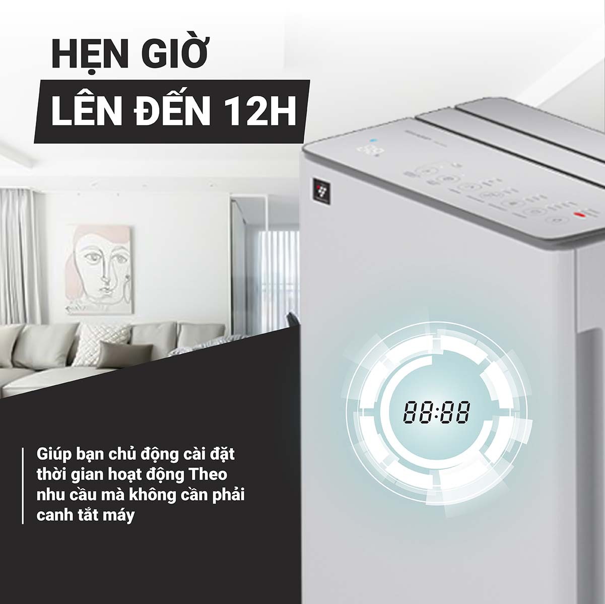 Máy hút ẩm được trang bị chức năng hẹn giờ lên đến 12 giờ, giúp bạn chủ động cài đặt thời gian hoạt động theo nhu cầu mà không cần phải canh tắt máy. Chỉ với vài thao tác đơn giản, bạn có thể để máy vận hành tự động trong khoảng thời gian mong muốn, tiết kiệm điện năng và đảm bảo không gian luôn khô thoáng.
