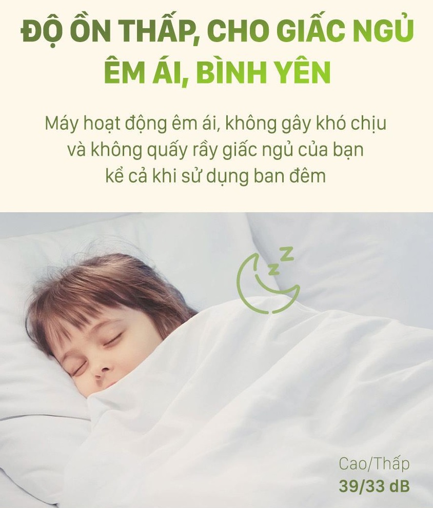 – Độ ồn 39 dB, đây là ngưỡng độ ồn khá êm không gây nhiều khó chịu cho người dùng trong quá trình máy hoạt động.