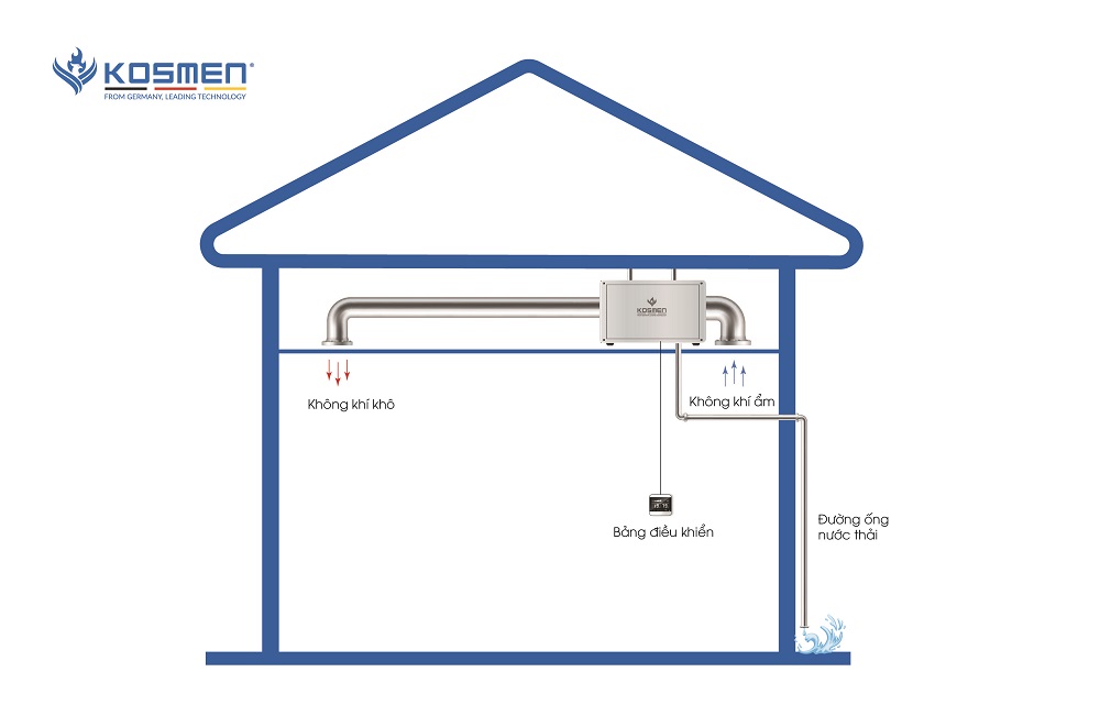 Nguyên lý hoạt động của máy hút ẩm treo trần Kosmen KM-180DS
