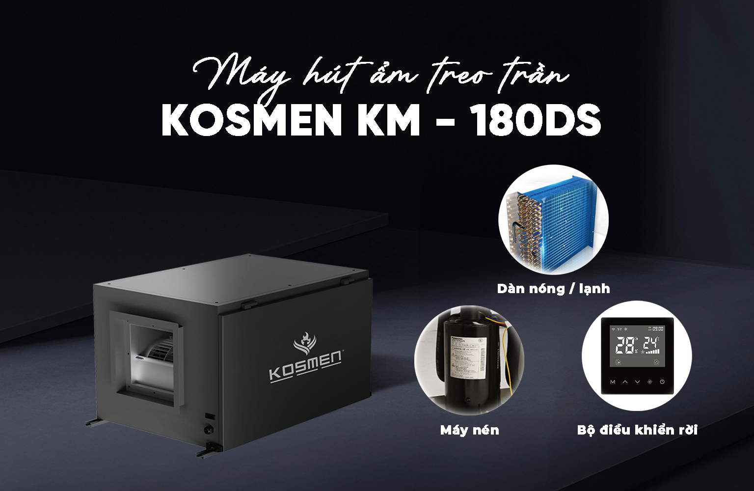 Giới thiệu về máy hút ẩm treo trần Kosmen KM-180DS