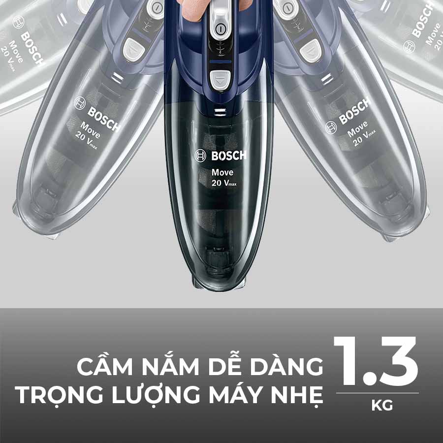 Với trọng lượng chỉ 1.3kg, người dùng có thể dễ dàng cầm nắm hay di chuyển mỗi lần sử dụng. Nhờ vậy, việc dọn nhà hay hút bụi sẽ không tốn quá nhiều sức lực cho bạn.