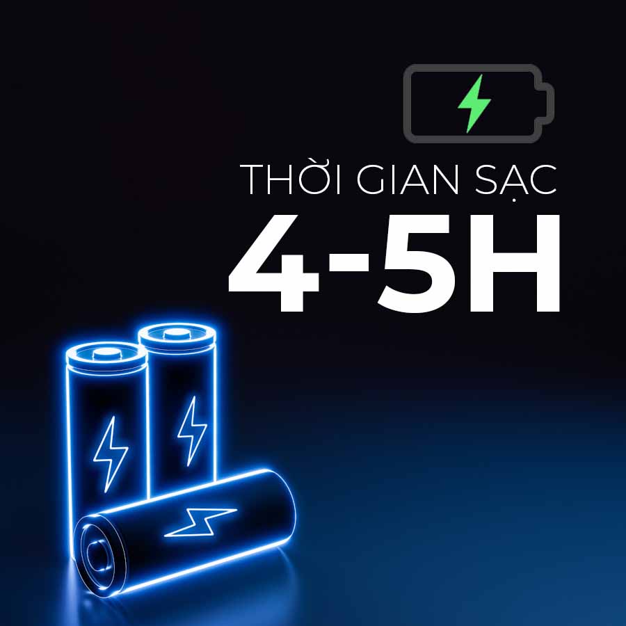 Đặc biệt, đèn báo sẽ hiển thị khi pin yếu và thời gian sạc đầy sẽ trong khoảng 4-5h.