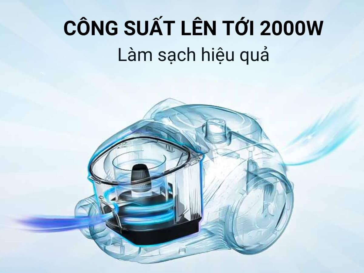 Động cơ 2000W mạnh mẽ, làm sạch kỹ lưỡng