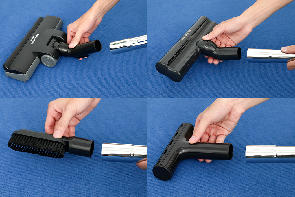 + Đầu hút đệm vệ sinh đệm giường hiệu quả hơn. Đầu hút này loại bỏ bụi trên giường bằng lực hút mạnh. Hãy giảm mức hút khi hút bụi trên giường như vỏ chăn để vải mỏng không bị cuốn vào miệng hút.