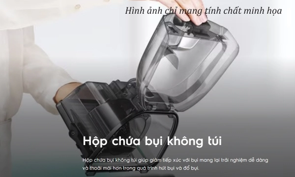 - Hộp chứa bụi dễ tháo rời để đổ bụi và vệ sinh