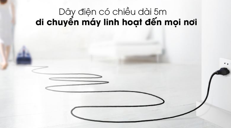 Dây điện dài 5m, bánh xe linh hoạt tiện di chuyển