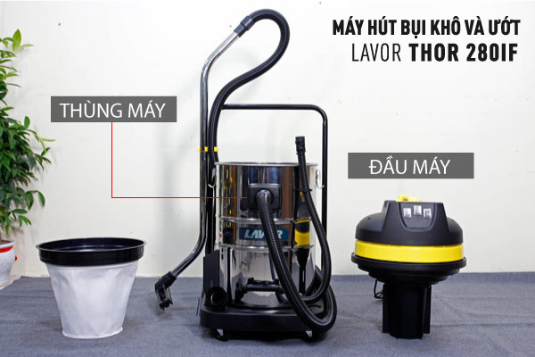 Máy hút bụi khô và ướt Lavor THOR 280 IF là dòng máy hút bụi khô/ướt công suất lớn với động cơ 2 mô-tơ chuyên phục vụ các ứng dụng chuyên nghiệp, vận hành bền bỉ, êm ái, cho tốc độ hút mạnh mẽ, nhanh chóng với lưu lượng hút 90lít/giây. Đồng thời, máy hút bụi công nghiệp này tiêu thụ điện năng 2000W/Max 2400W đáp ứng đa dạng các nhu cầu làm sạch trong gia đình, sân vườn, cửa hàng rửa xe, nhà hàng, khách sạn, nhà kho, phân xưởng…