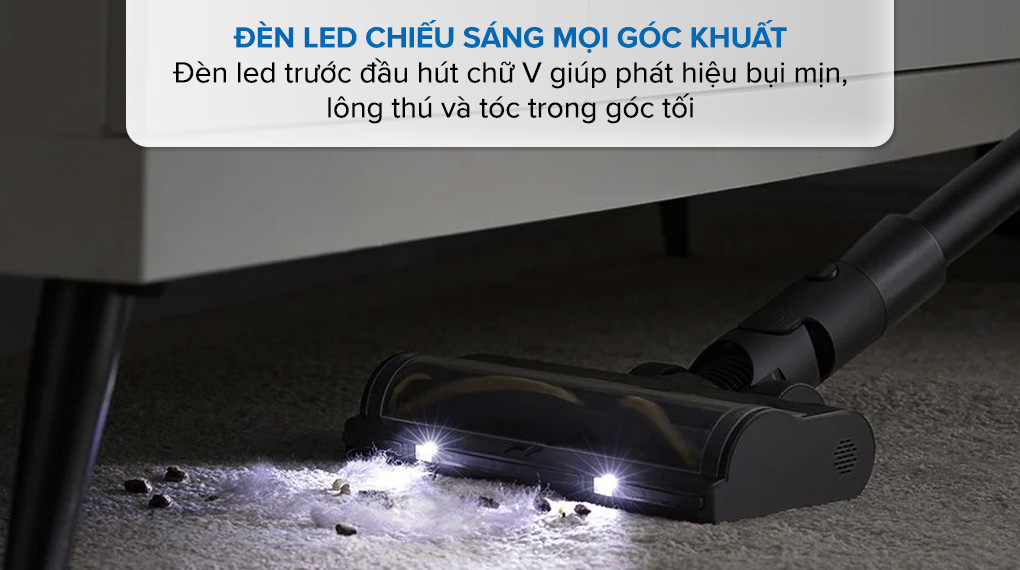 – Đèn LED chiếu sáng giúp phát hiện các loại bụi mịn, lông, tóc trong những góc tối mà mắt thường khó nhìn thấy.