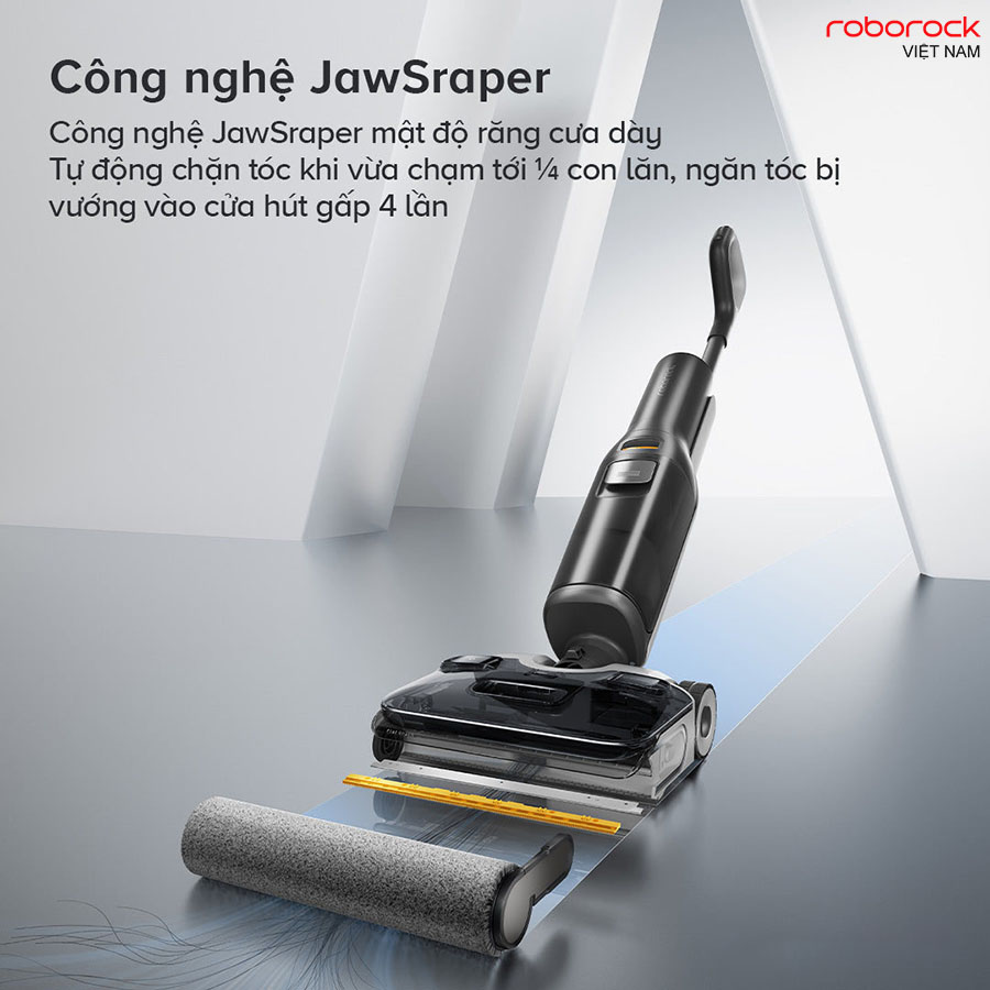 Công nghệ Jaw Scraper giúp ngăn chặn tình trạng tóc bị vướng vào cửa hút gấp 4 lần nhờ vào mật độ răng cưa dày hơn 70% với 141 răng gỡ rối và tính năng tự động ngăn tóc khi chạm đến 1/4 con lăn. Thời lượng sử dụng thiết bị đến 40 phút, nhờ vậy người dùng có thể làm sạch diện tích lớn trong khoảng thời gian dài mà không lo bị gián đoạn giữa chừng, Ngoài ra, thiết bị còn có lớp vỏ silicon chống thấm nước và tính năng kiểm soát nhiệt thông minh, nhờ vậy bảo vệ pin tối đa trước tác động từ bên ngoài, gia tăng độ bền.