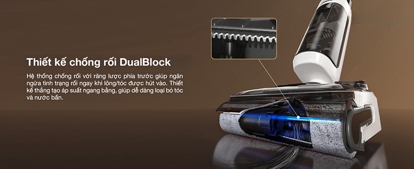 Máy lau nhà Tineco S6 Stretch Pro được trang bị hệ thống chống rối DualBlock Anti-tangle giúp ngăn ngừa tình trạng tóc, lông thú cưng hay các sợi vải quấn vào trục lăn. Nhờ đó, máy có thể hoạt động hiệu quả mà không bị gián đoạn, tiết kiệm thời gian và công sức cho người sử dụng.