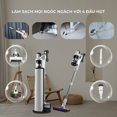 Hiệu quả trên nhiều loại mặt sàn với thiết kế không dây gọn nhẹ. Động cơ Digital Inverter tạo lực hút siêu mạnh đến 30.000Pa. Thiết kế khí động học giúp tối ưu luồng khí hút và bộ lọc đa luồng hút xoáy giúp lọc sạch bụi mịn.