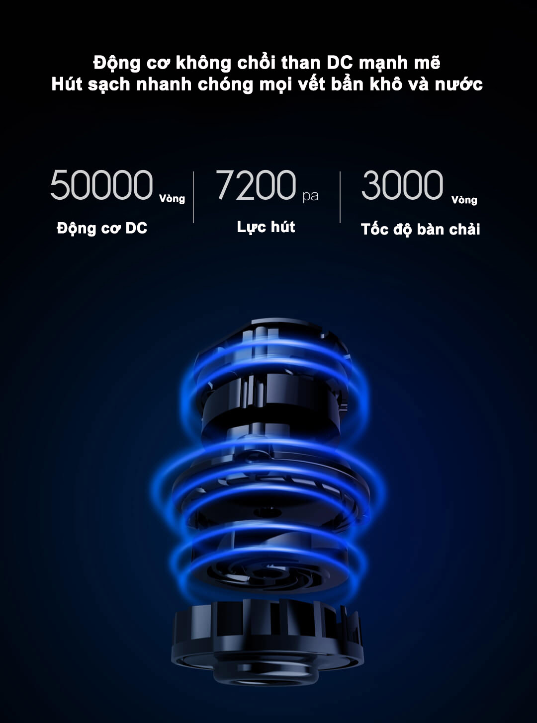 Động cơ 140W, cung cấp lực hút tới 7200Pa