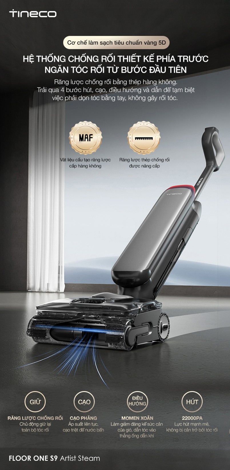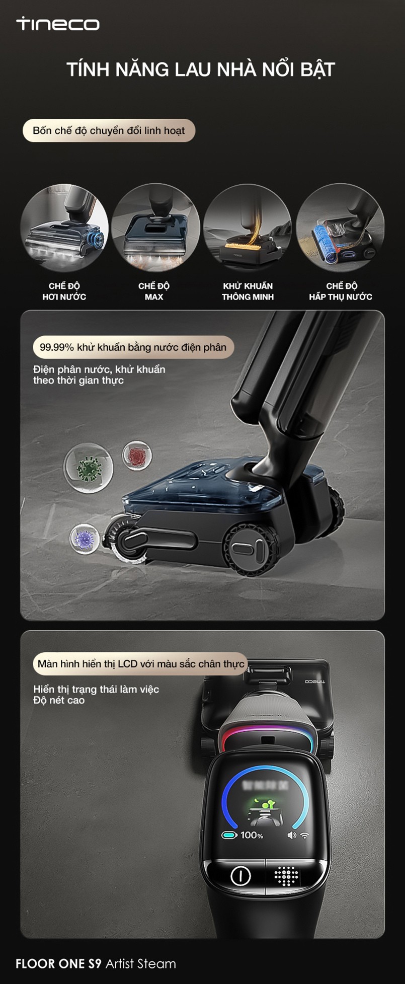 Tineco Floor One S9 Artist Steam lực hút 22.000Pa siêu mạnh