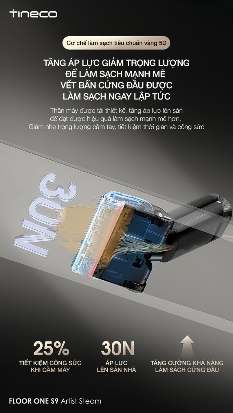 Với chế độ Steam này, Tineco Floor One S9 Artist Steam sẽ hoạt động liên tục trong vòng 30 phút.