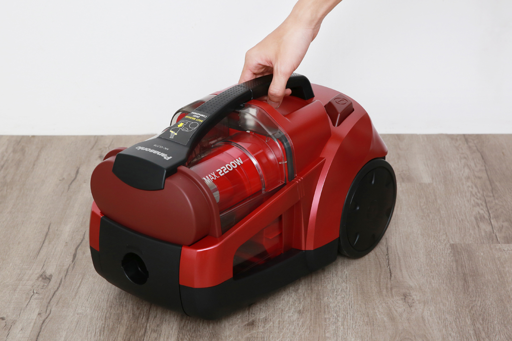 Máy hút bụi Panasonic thiết kế hiện đại, gọn đẹp, với bánh xe mềm và tay xách thuận tiện giúp di chuyển nhẹ nhàng trong quá trình sử dụng